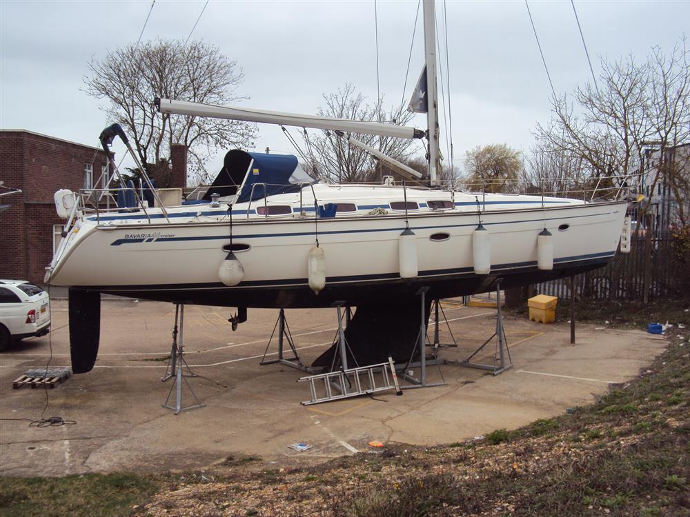 This is an exceptional example of a 2005 Bavaria 46 She was purchased by the present owner as new and shipped by road directly to the South of France where the owner and his family used her for vacations and short sailing trips she was then sailed to Spain where her time was spent equally in Barcelona and Valencia. The VAT was paid in 2016 in Spain (Certificate available) After which the boat was shipped by road to the UK where she now lies out of the water. This is a production boat built to factory specification with a few extras fitted from new. She has had a relatively easy life has been well maintained and serviced and the condition of the sails and low engine hours would indicate little use